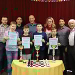 48 Kinder, das sind 12 Mannschaften, aus 4 verschiedenen Schulen des Bezirkes nahmen am Bezirksschachturnier in der VS und NMS Grünbach teil.