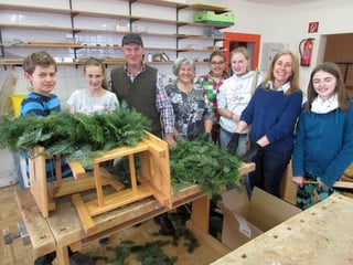 Die NMS und VS stellten - wie schon die Jahre zuvor - einen Maibaum auf. Die dritte Klasse fertigte wieder mit unseren bewährten Profis die Kränze an, die VS schmückte den Baum mit Blumen und die vierte Klasse richtete ihn, unterstützt durch ein Liedchen aller Anwesenden, auf.
