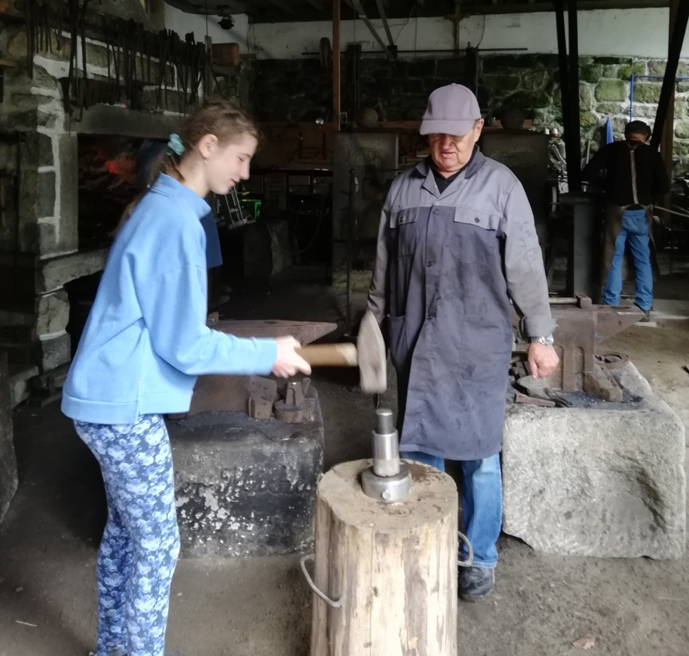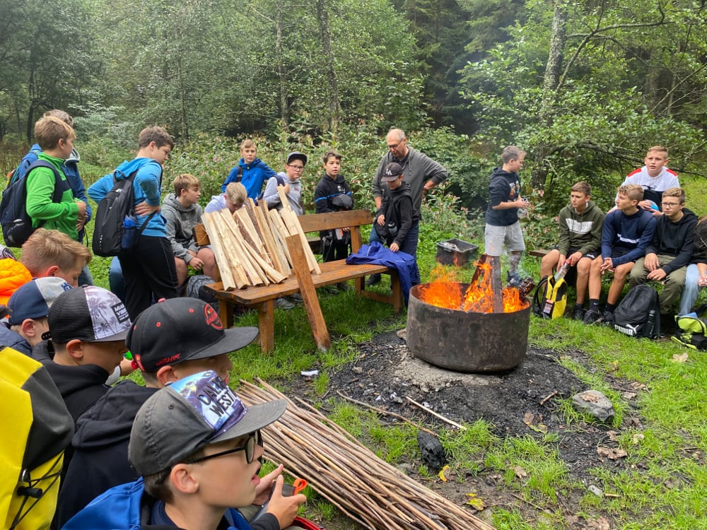 Dort erwarteten sie drei Stationen: Im Thuryhammer durfte sich jede Schülerin und jeder Schüler unter Anleitung eine Münze mit dem Grünbacher Wappen prägen, eine Gruppe wurde von zwei Waldpädagogen betreut und eine Gruppe konnte sich derweil Leckeres grillen (vorbereitet von Veronika Hofstetter und ihrem Gatten). Das Wetter spielte mit und somit stand einem unvergesslichen Wandertag nichts mehr im Wege.