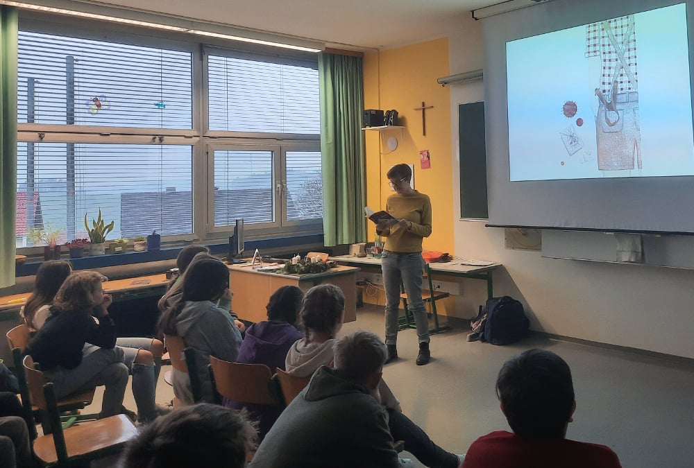 Die dritte und vierte Klasse lauschte aufmerksam den Ausführungen von Leonora Leitl, die die Figuren aus ihrem Buch: „Held Hermann. Als ich Hitler im Garten vergrub“ zum Leben erweckte und Kindheit bzw. Jugendzeit zum Ende des Zweiten Weltkrieges anschaulich schilderte. Danke für die interessante Stunde.